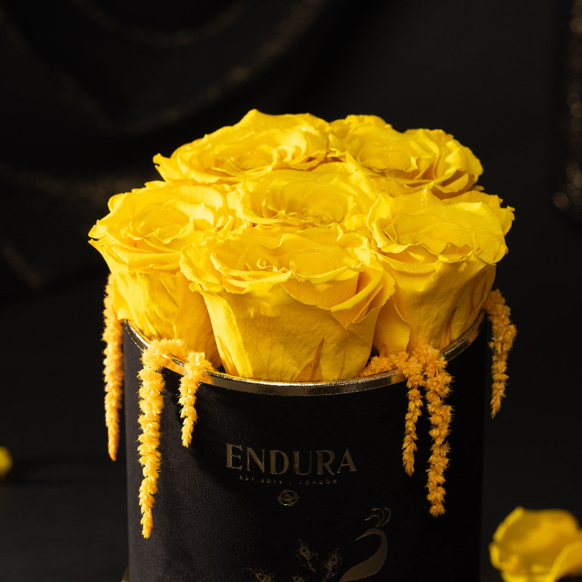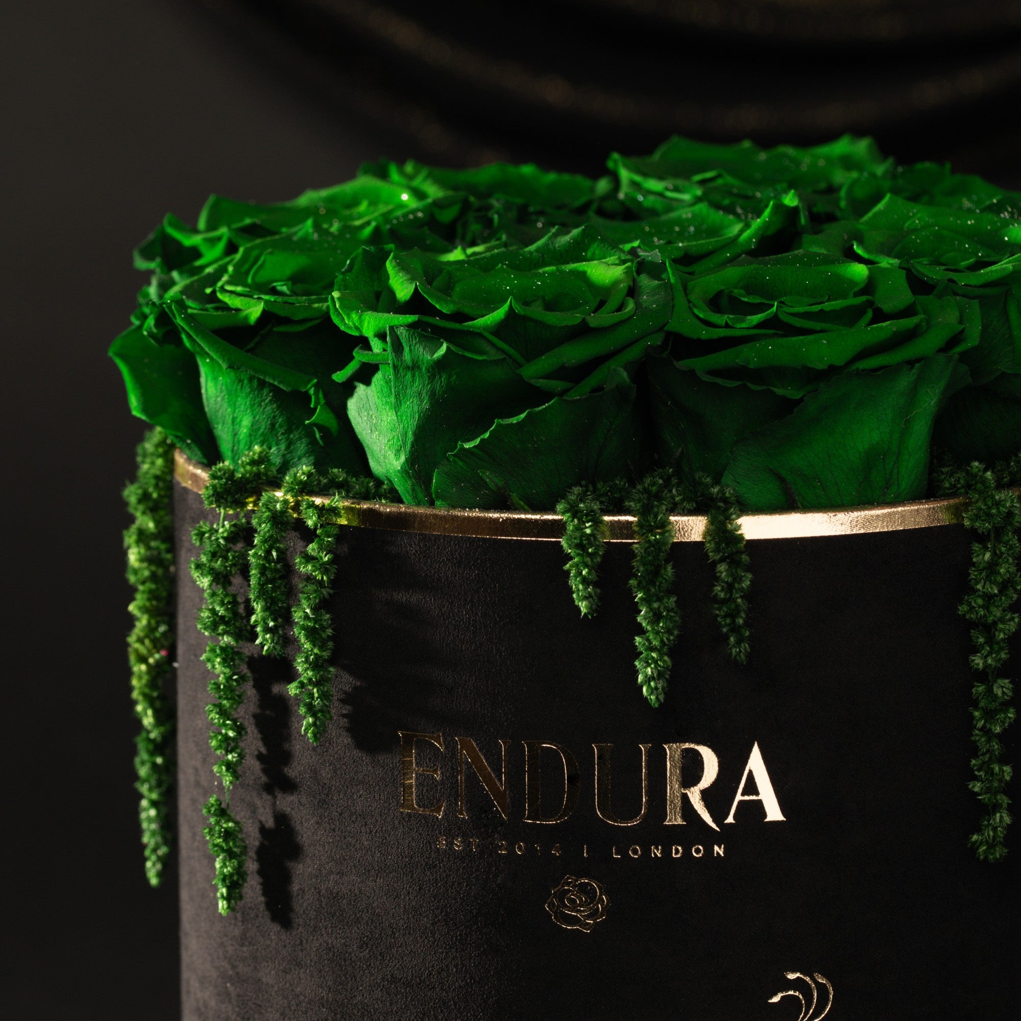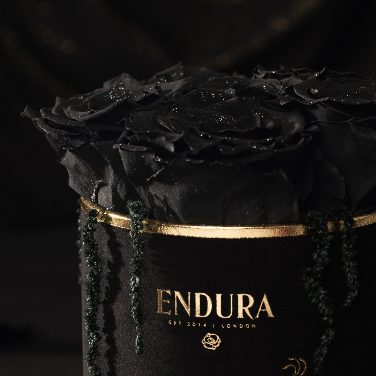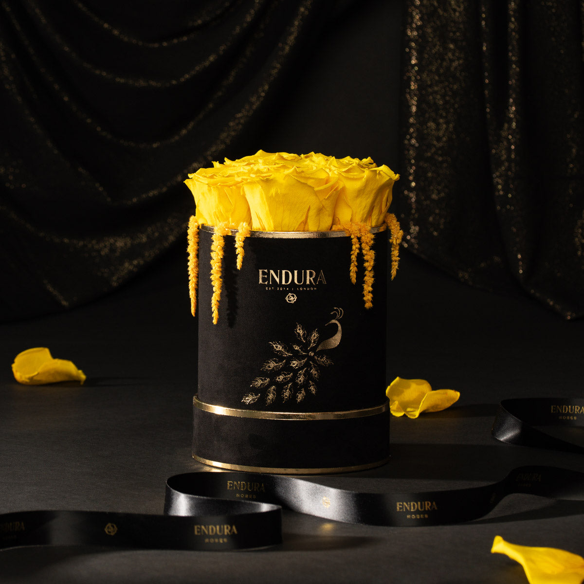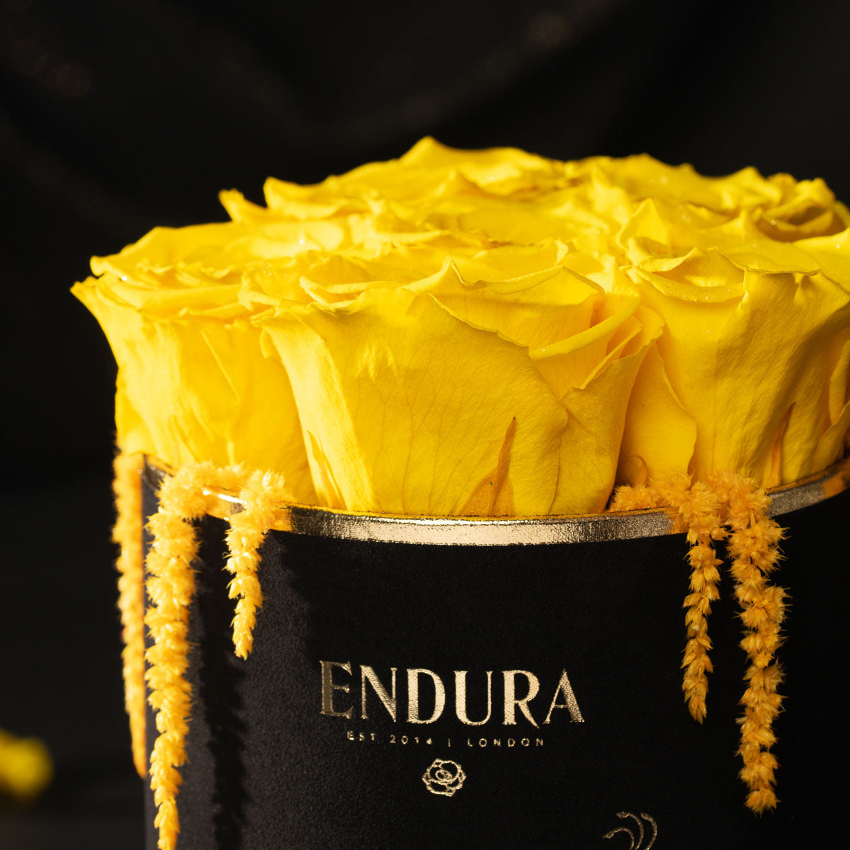 Endura Bloom is elegantly presented in a sumptuous velvet-textured box, within lies a curated selection of exquisite natural roses, each meticulously preserved to perfection and offered in an array of captivating shades. A symbol of timeless beauty and refinement; every bloom embodies artistry and precision, retaining its natural beauty for up to three years.