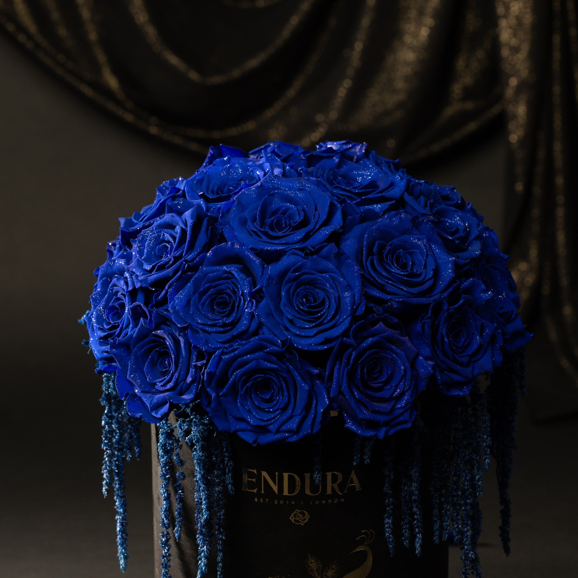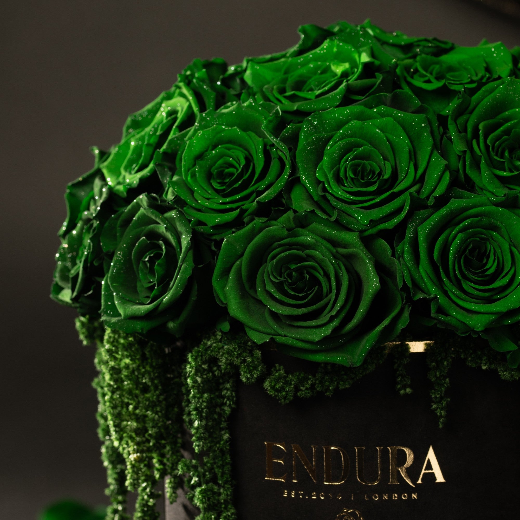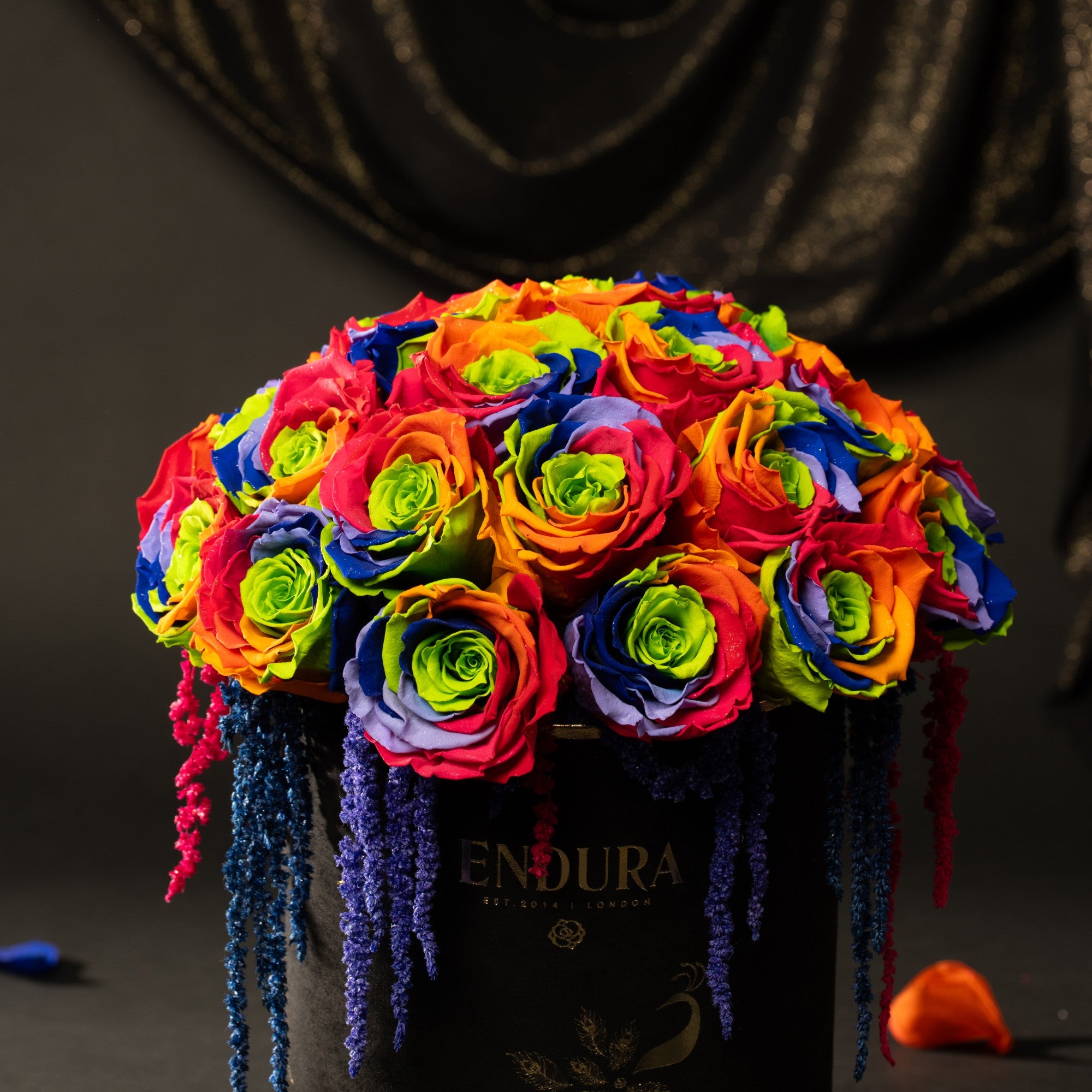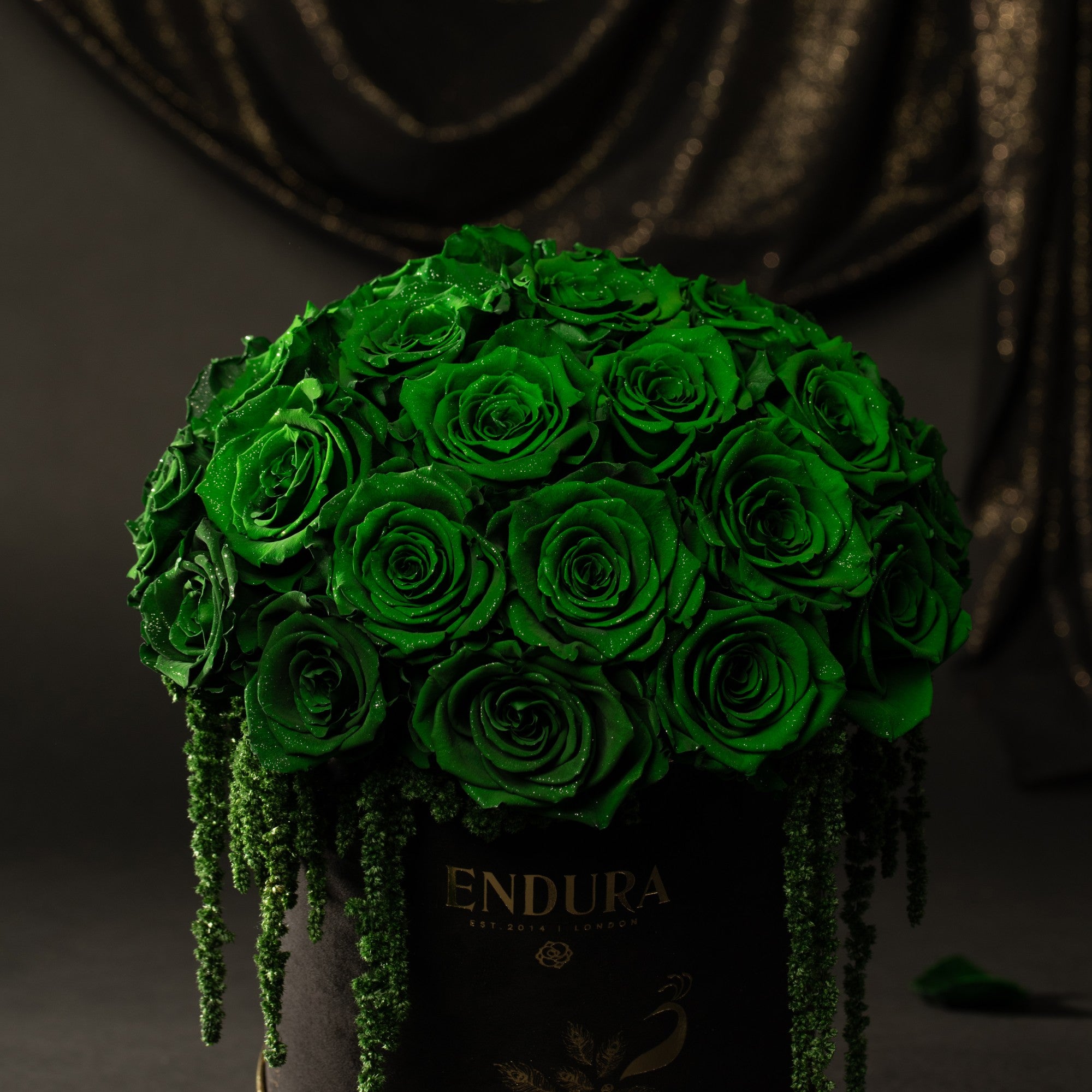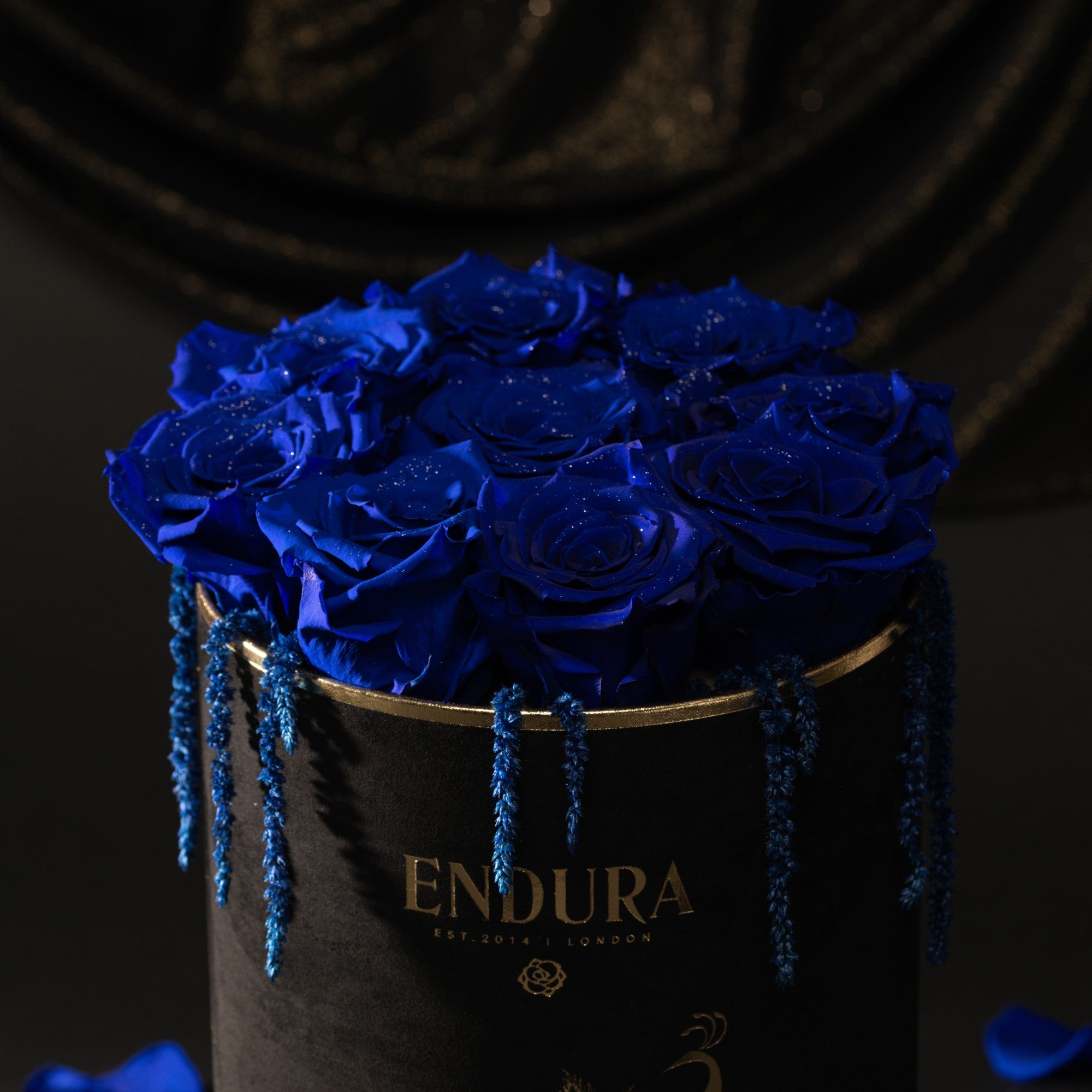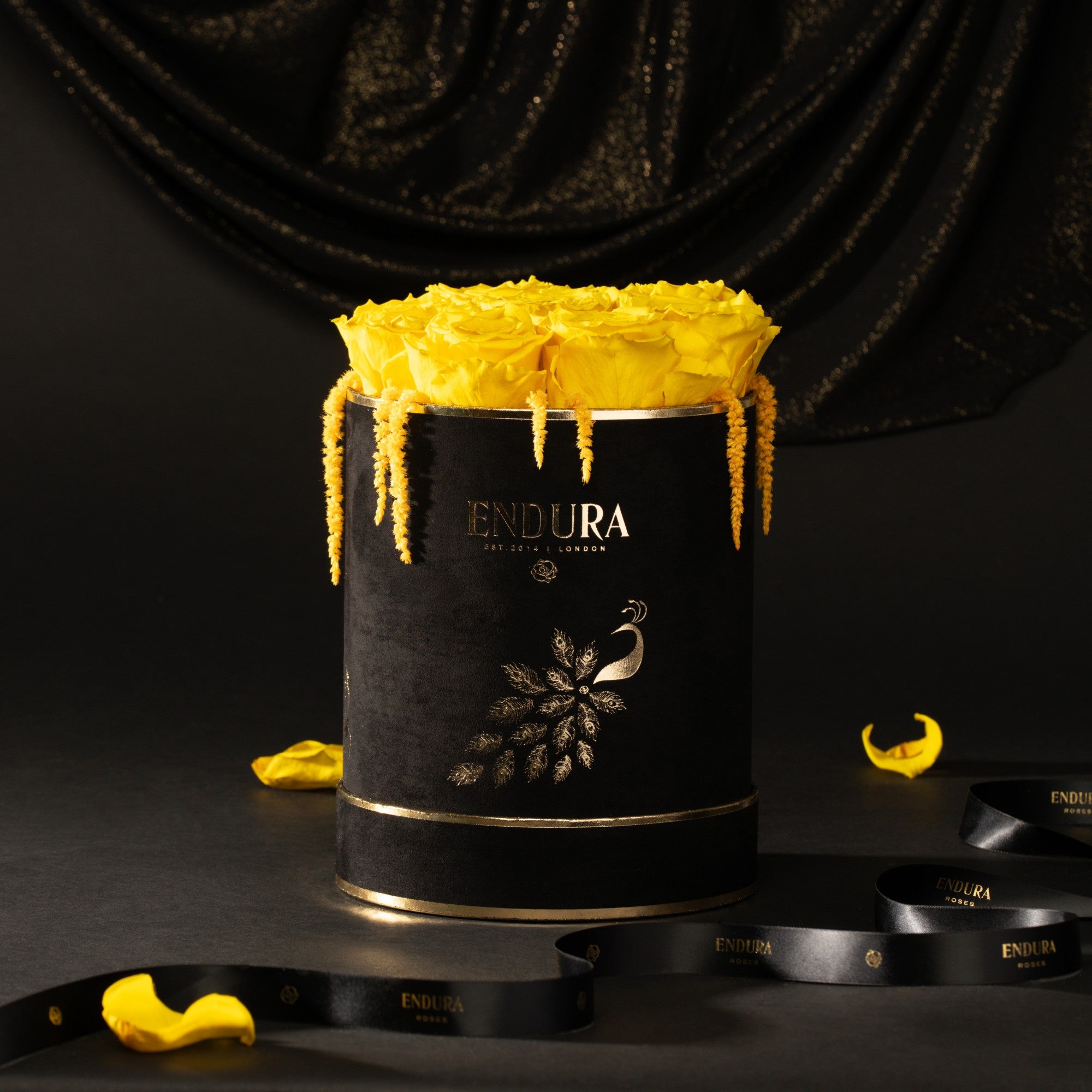 Endura Bloom is elegantly presented in a sumptuous velvet-textured box, within lies a curated selection of exquisite natural roses, each meticulously preserved to perfection and offered in an array of captivating shades. A symbol of timeless beauty and refinement; every bloom embodies artistry and precision, retaining its natural beauty for up to three years.