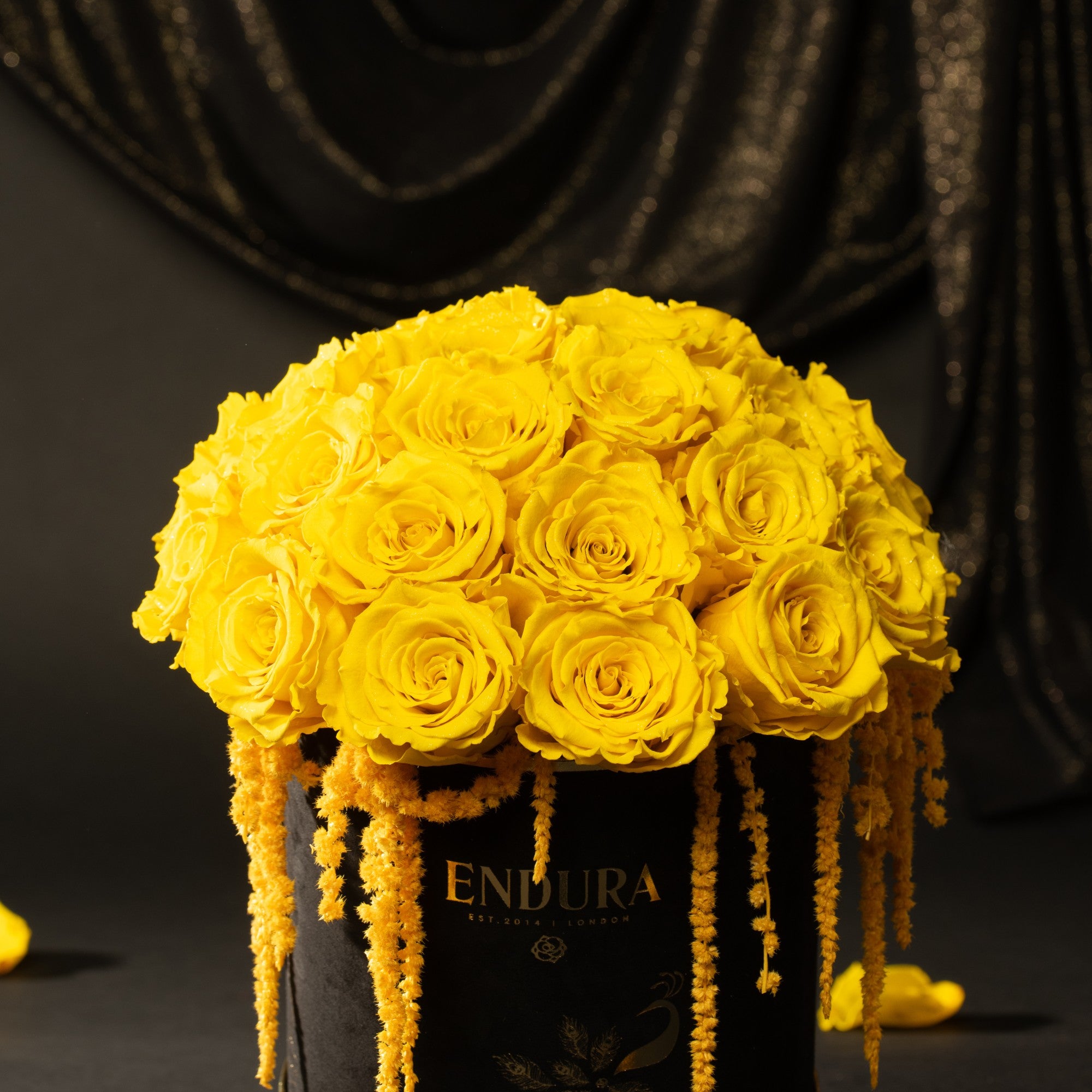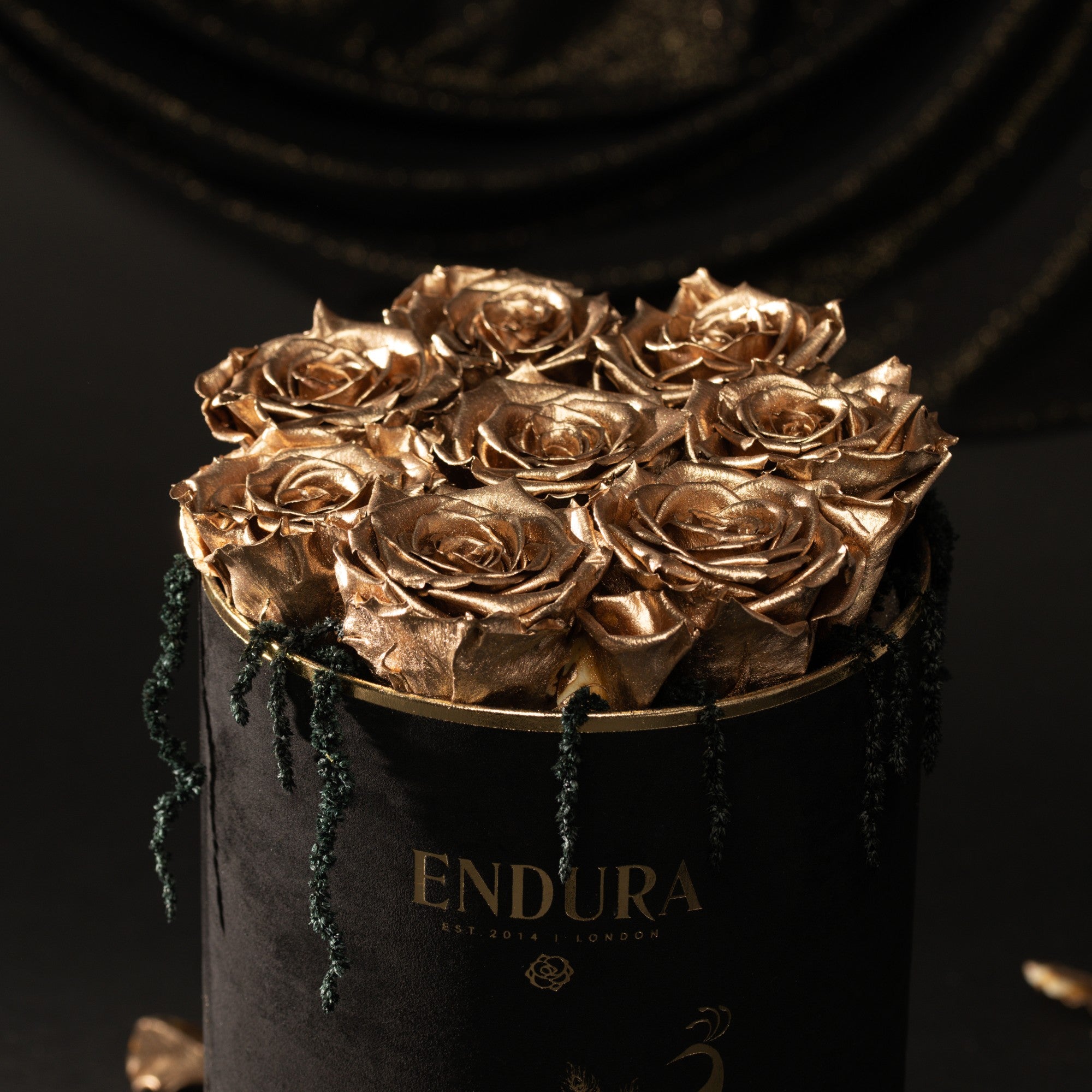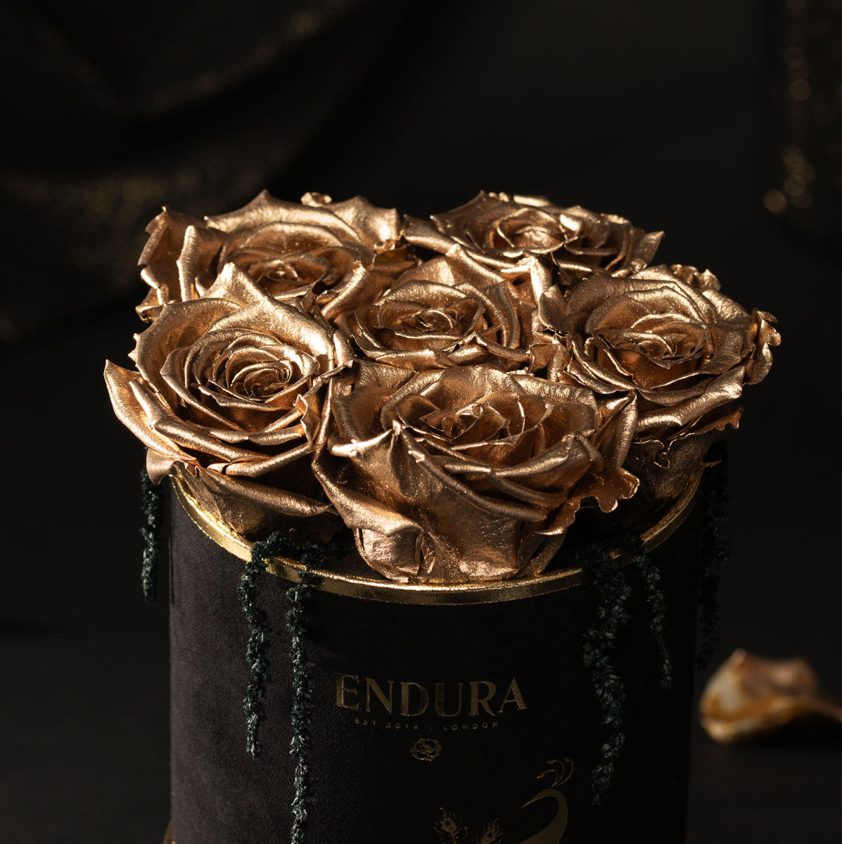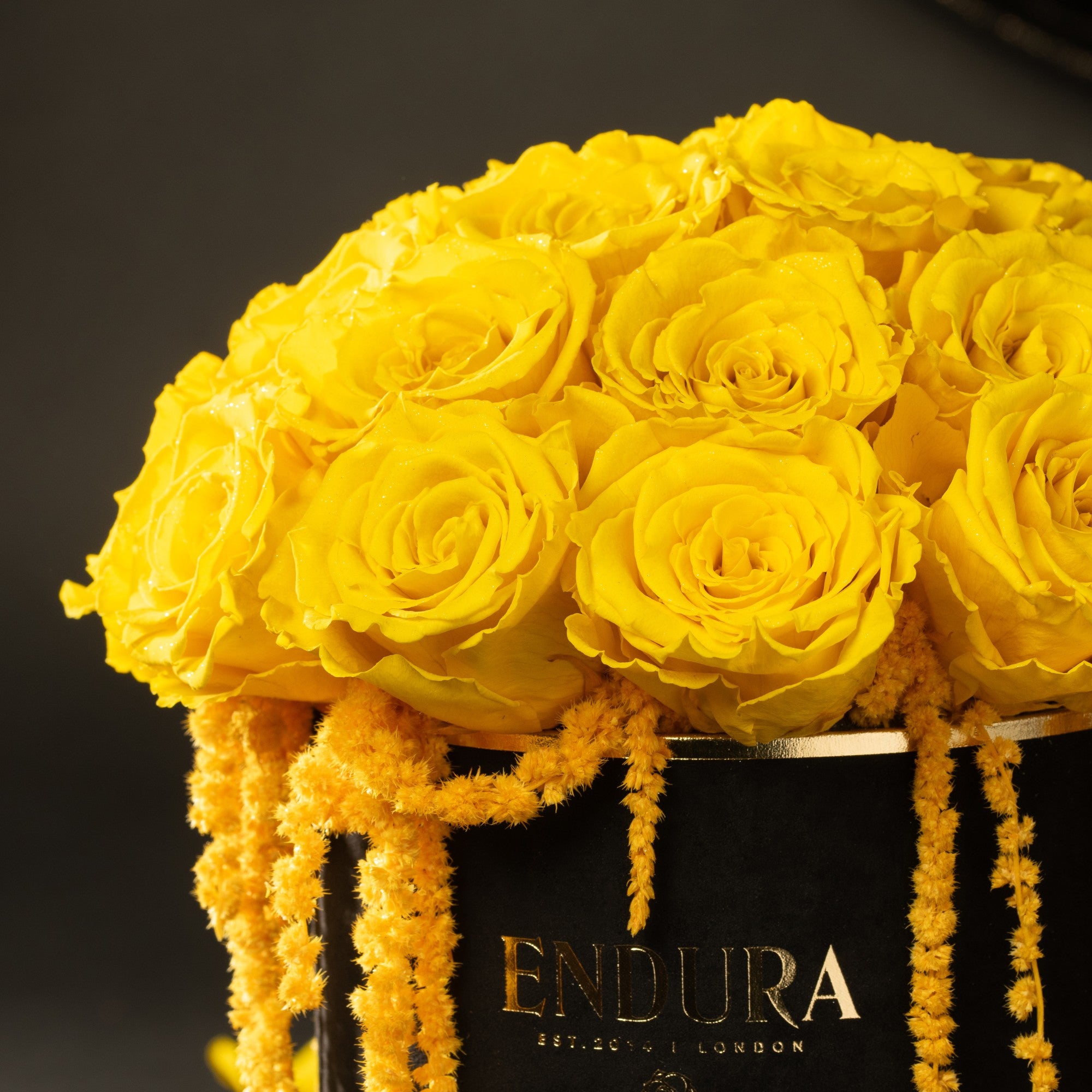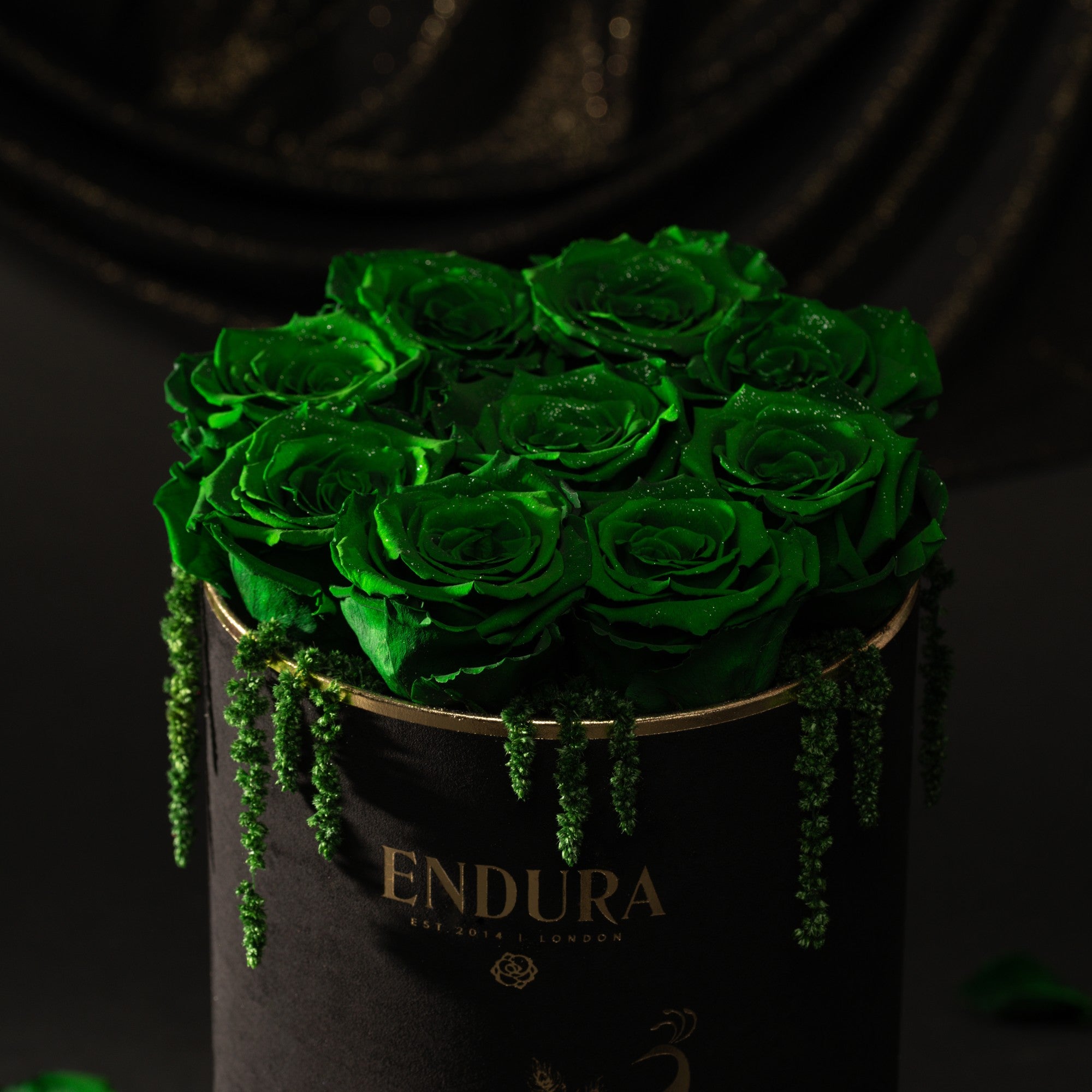 Endura Bloom is elegantly presented in a sumptuous velvet-textured box, within lies a curated selection of exquisite natural roses, each meticulously preserved to perfection and offered in an array of captivating shades. A symbol of timeless beauty and refinement; every bloom embodies artistry and precision, retaining its natural beauty for up to three years.