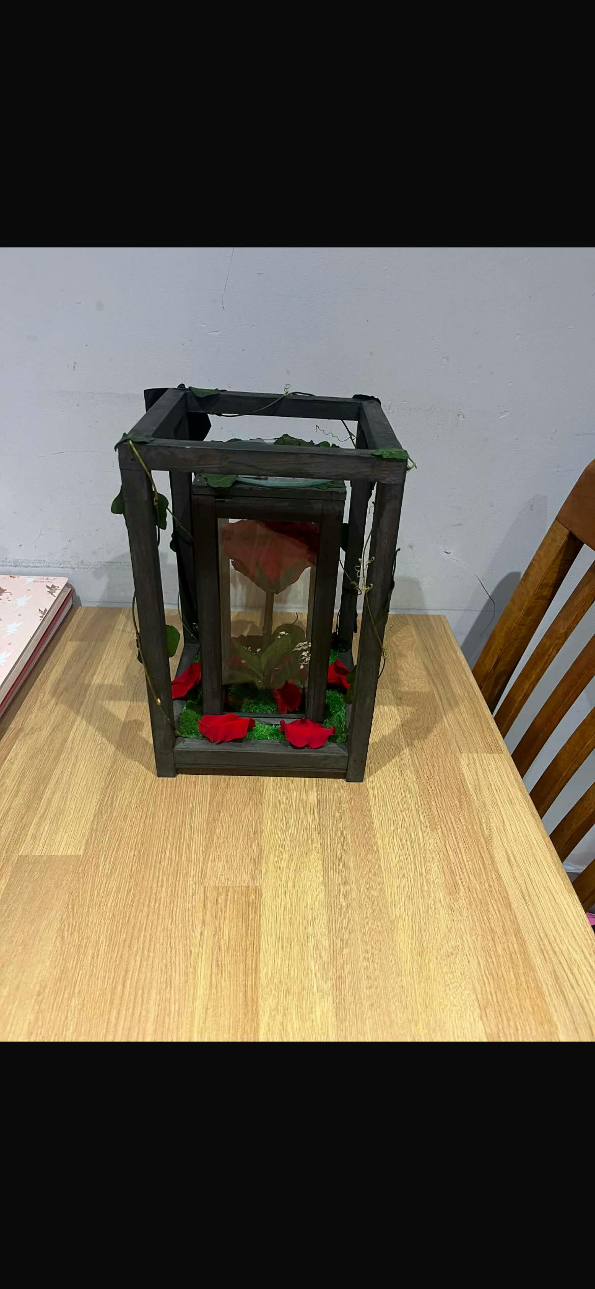 Perhaps the best possible way of presenting our signature roses. The wooden frames surrounding the standing stem are reminiscent of traditional hanging lanterns, albeit fitted with clear glass panels rather than the light paper of days past.