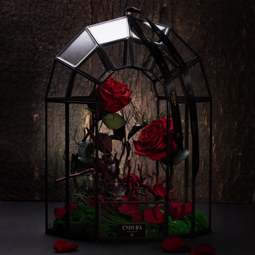 The name lends itself to the detailed and labyrinthine shape of this structure, where a charming family of roses inhabit. This sheer size of this product is a statement in itself and makes the perfect centrepiece.