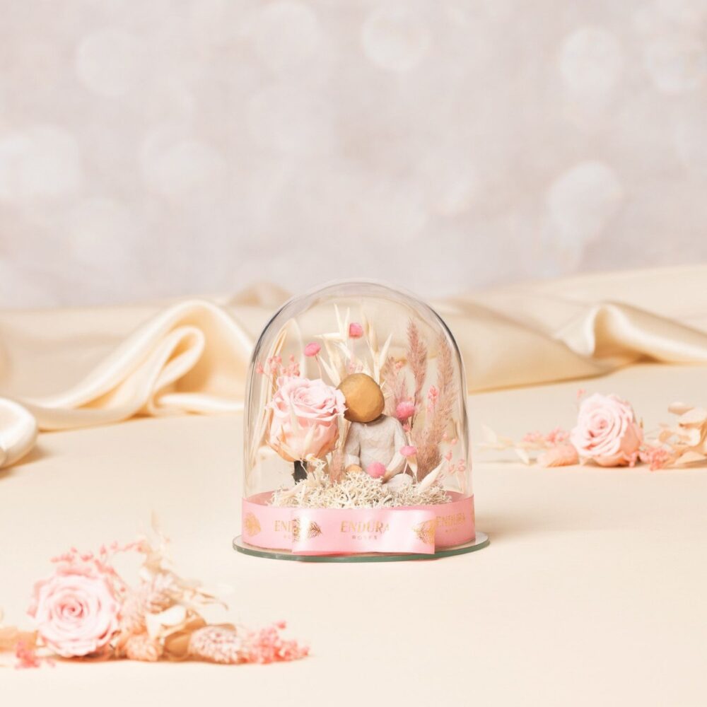 A sweet reminder of a sweet child Everything about the Little Peace creation is endearing as it symbolises the purity and perfection of a daughter. Featuring a contemporary sculpture and a naturally enhanced rose, it holds the power to bring a tear to your eye with every glance.