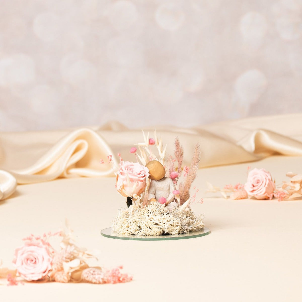 At the heart of Little Peace sits a minimalistic sculpture that you may emotionally imprint your own child upon. She sits surrounded by beauty almost equal to her: naturally enhanced broom, avena and eremus and our signature pink forever rose. Everything about this creation is endearing and once associated with your daughter, it holds the power to bring a tear to your eye with every glance.