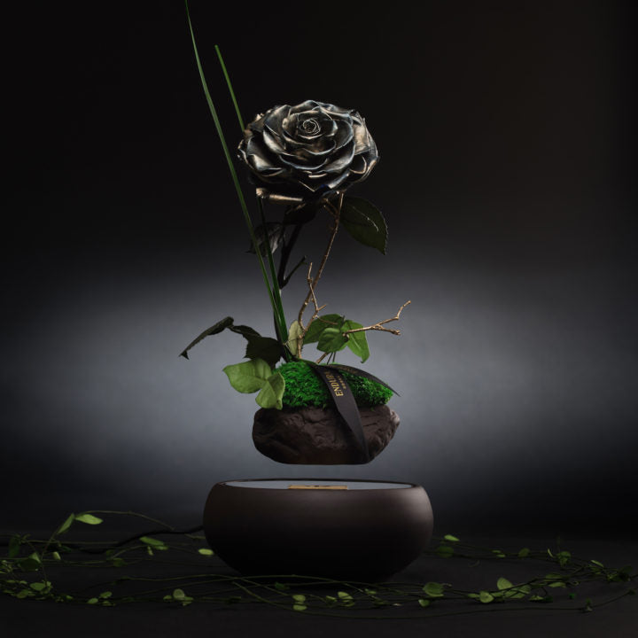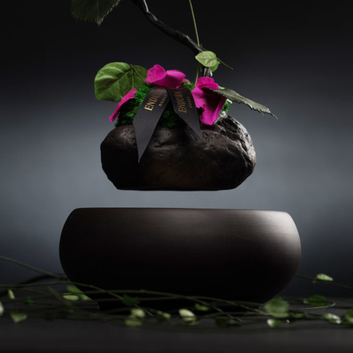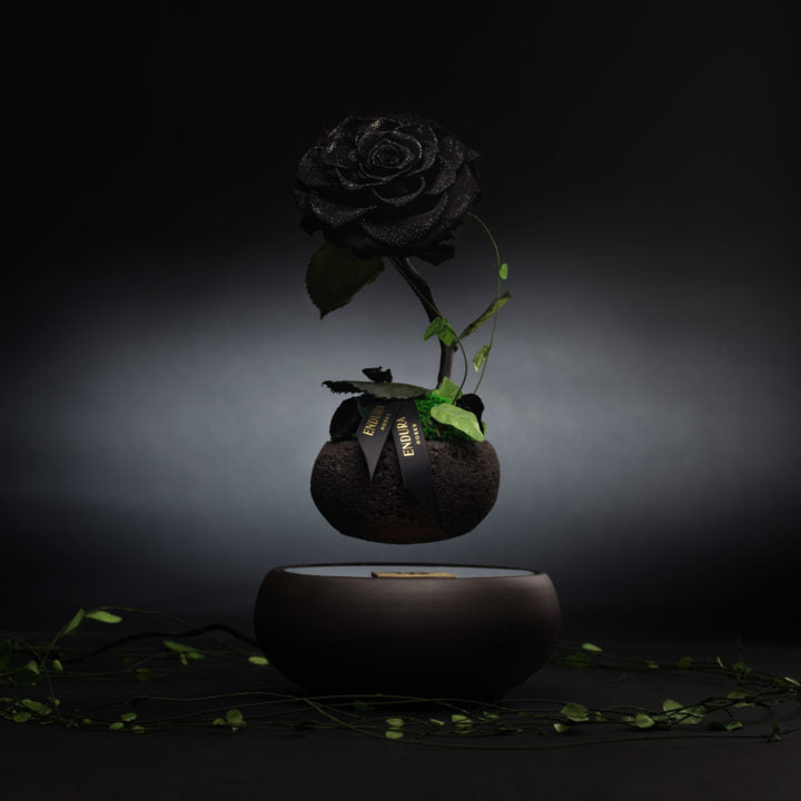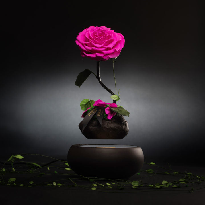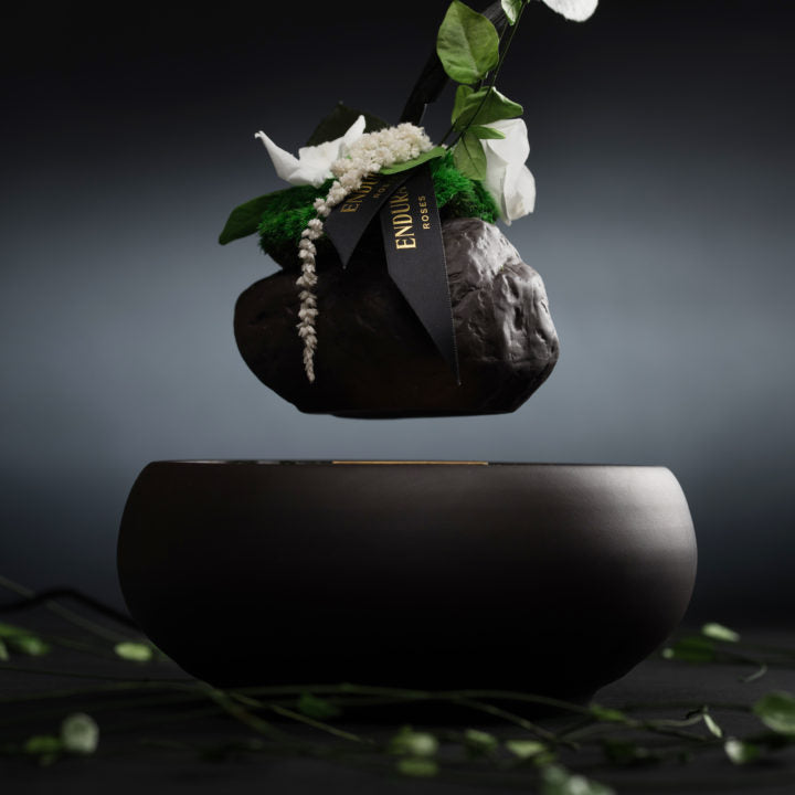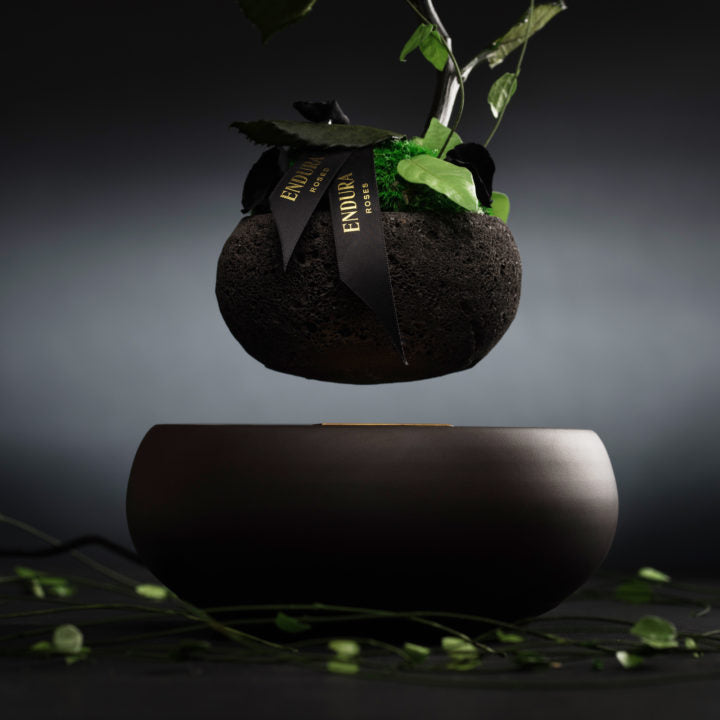 A masterpiece flourishes when an everlasting Endura rose meets a gravity-defying dance of natural magnetic energy – a triumph of scientific and visual design.