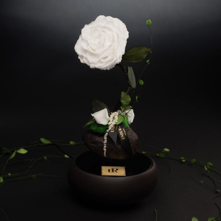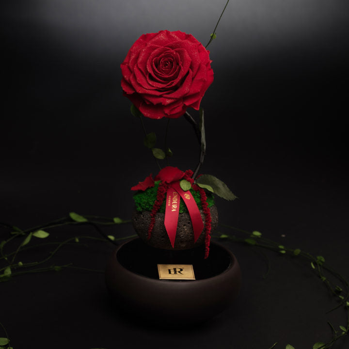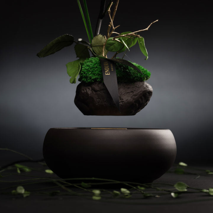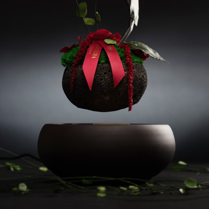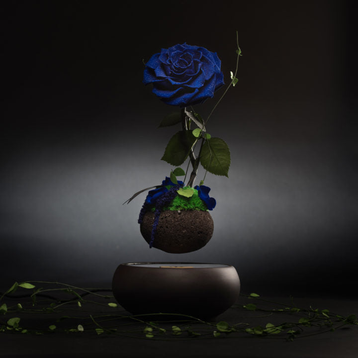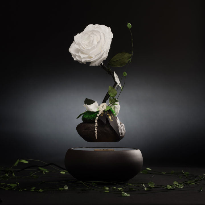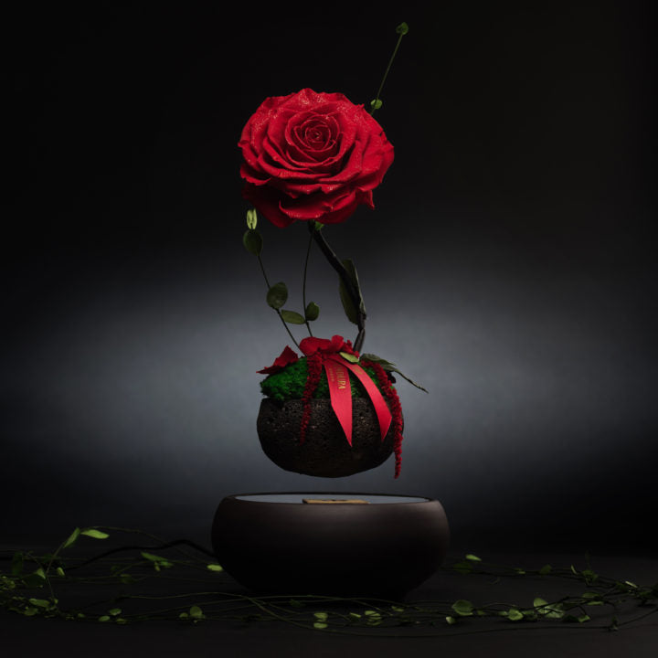 A masterpiece flourishes when an everlasting Endura rose meets a gravity-defying dance of natural magnetic energy – a triumph of scientific and visual design.
